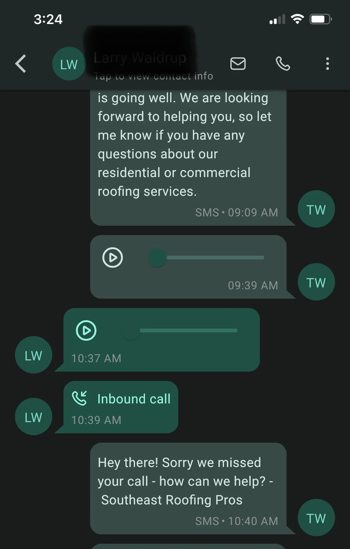 Automatic text back missed calls
